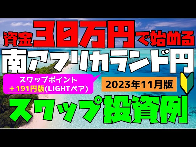 この記事では、元手資金30万円での南アフリカランド円スワップ投資の始め方・買い方・ポジションの持ち方の例の2023年11月版をお伝えします。