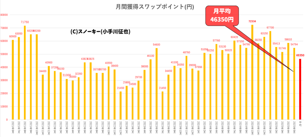スワップポイント投資は、頻繁に売買を繰り返す方は少ないと思いますので、見るべきは長期的に安定したスワップポイントが付与されているか?だと思います。