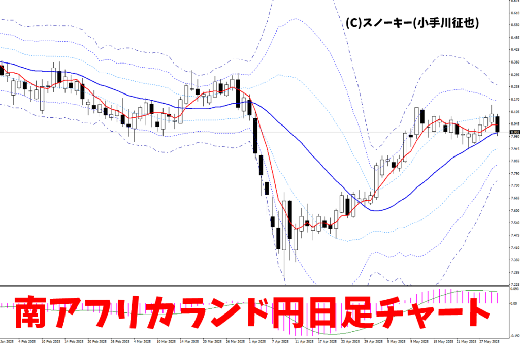 南アフリカランド円は前回7.9円台とあまり変わらない8.0円台。