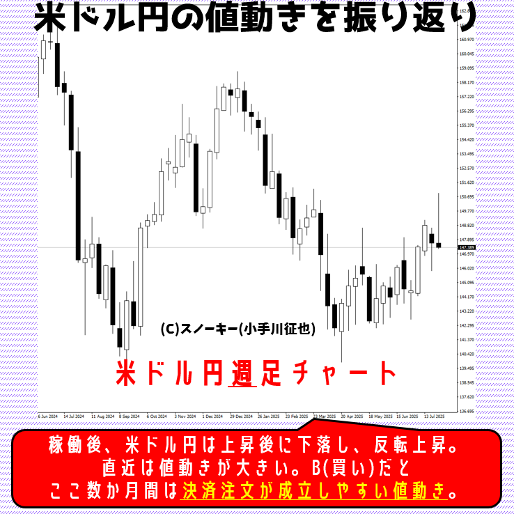 売買システム稼働後の米ドル円の値動きを、今回は週足チャートで確認してみます。