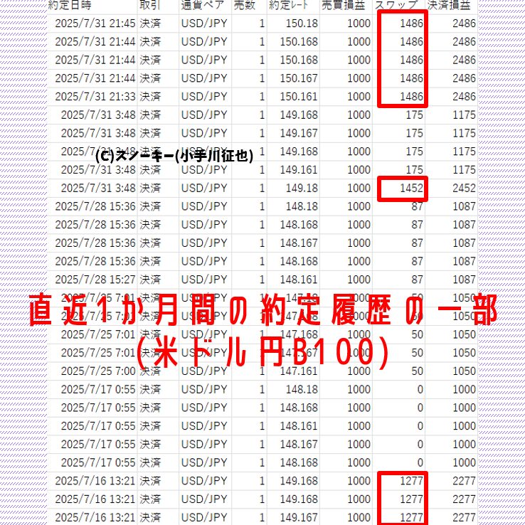 2023年9月4日稼働開始、2025年8月3日、執筆日までに得た買いスワップポイントを調べた結果が以下の画像です。